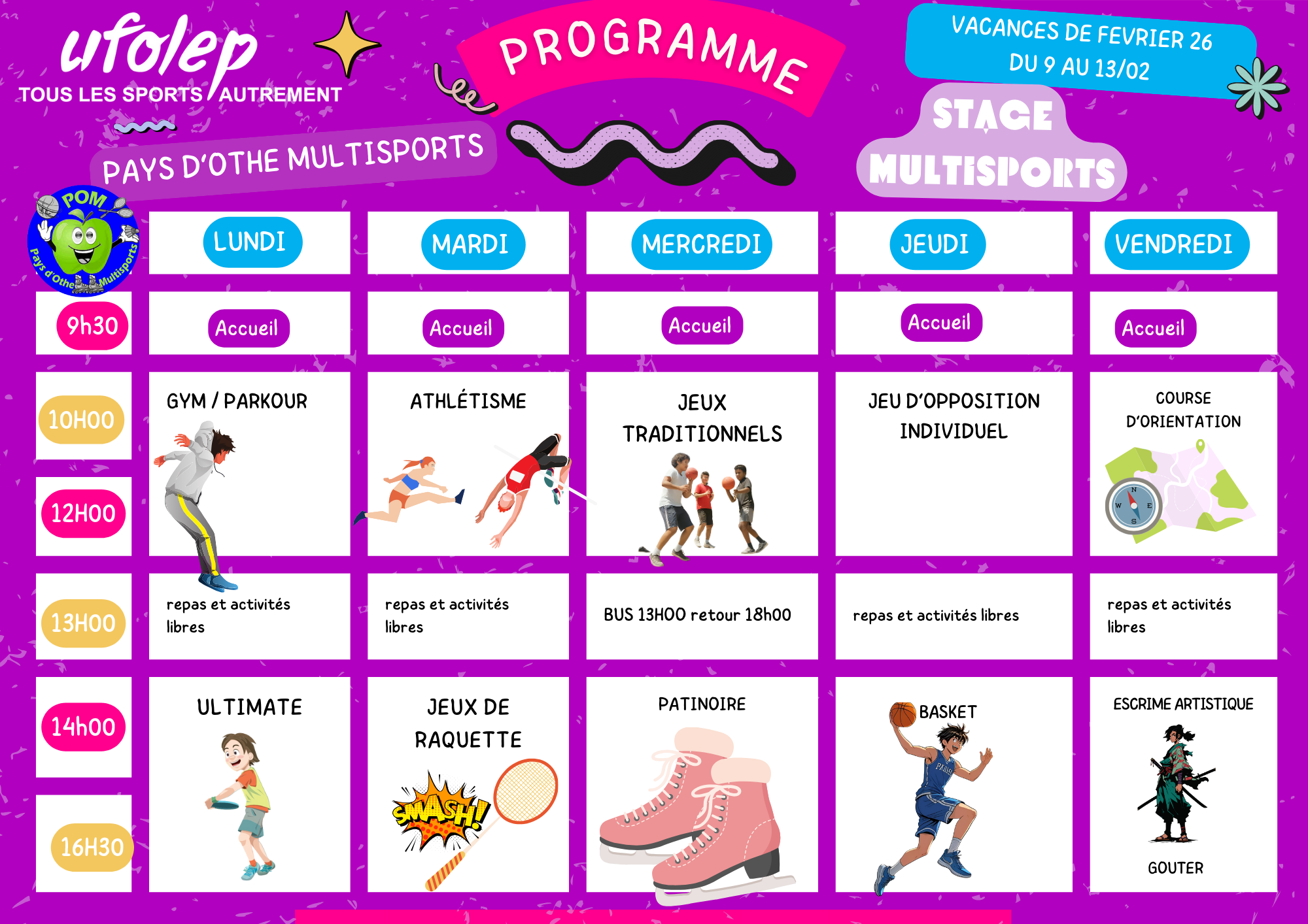 L’association POM propose un stage multisports aux VACANCES de FEVRIER